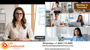escribe a info@uslanguageschool.com, o comuníquese por WhatsApp al +1 (845) 715-8390.